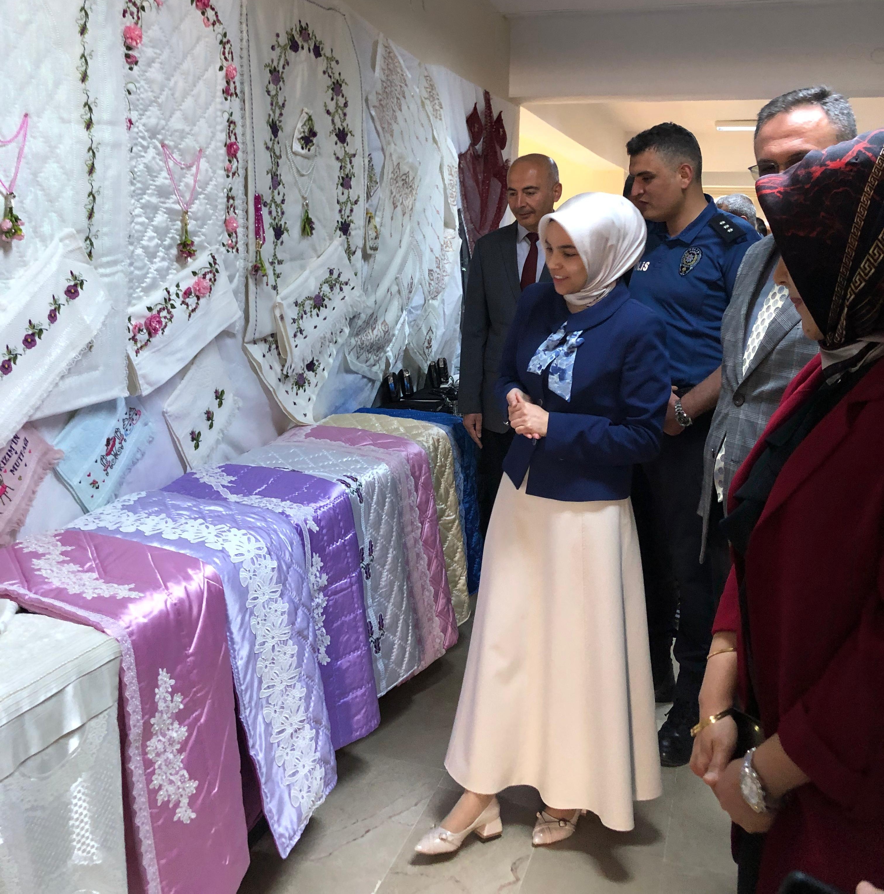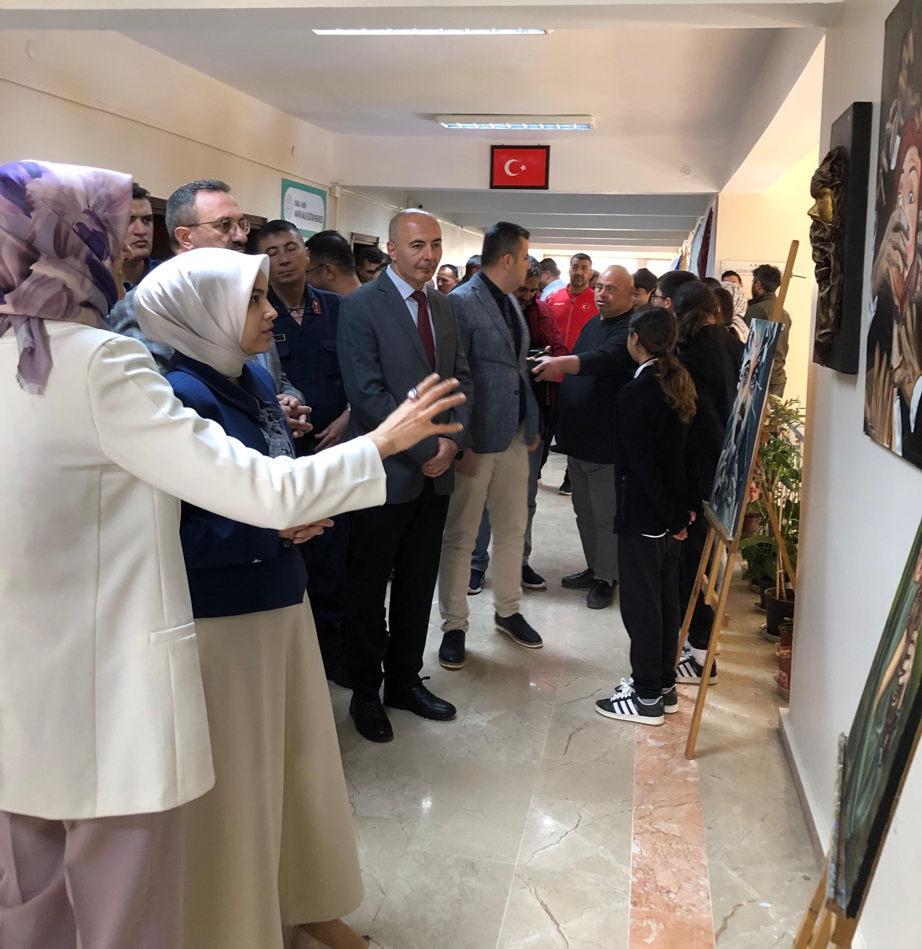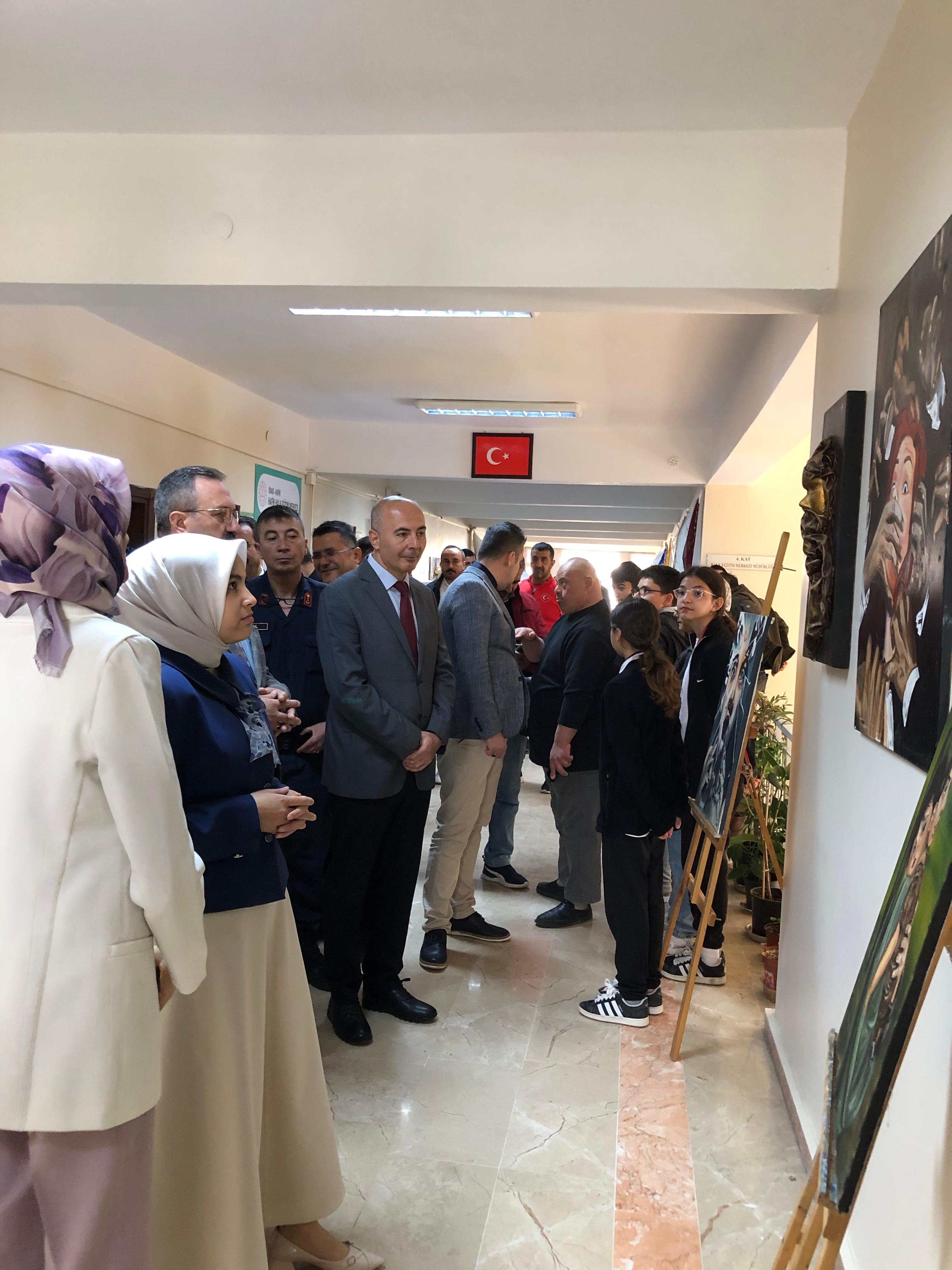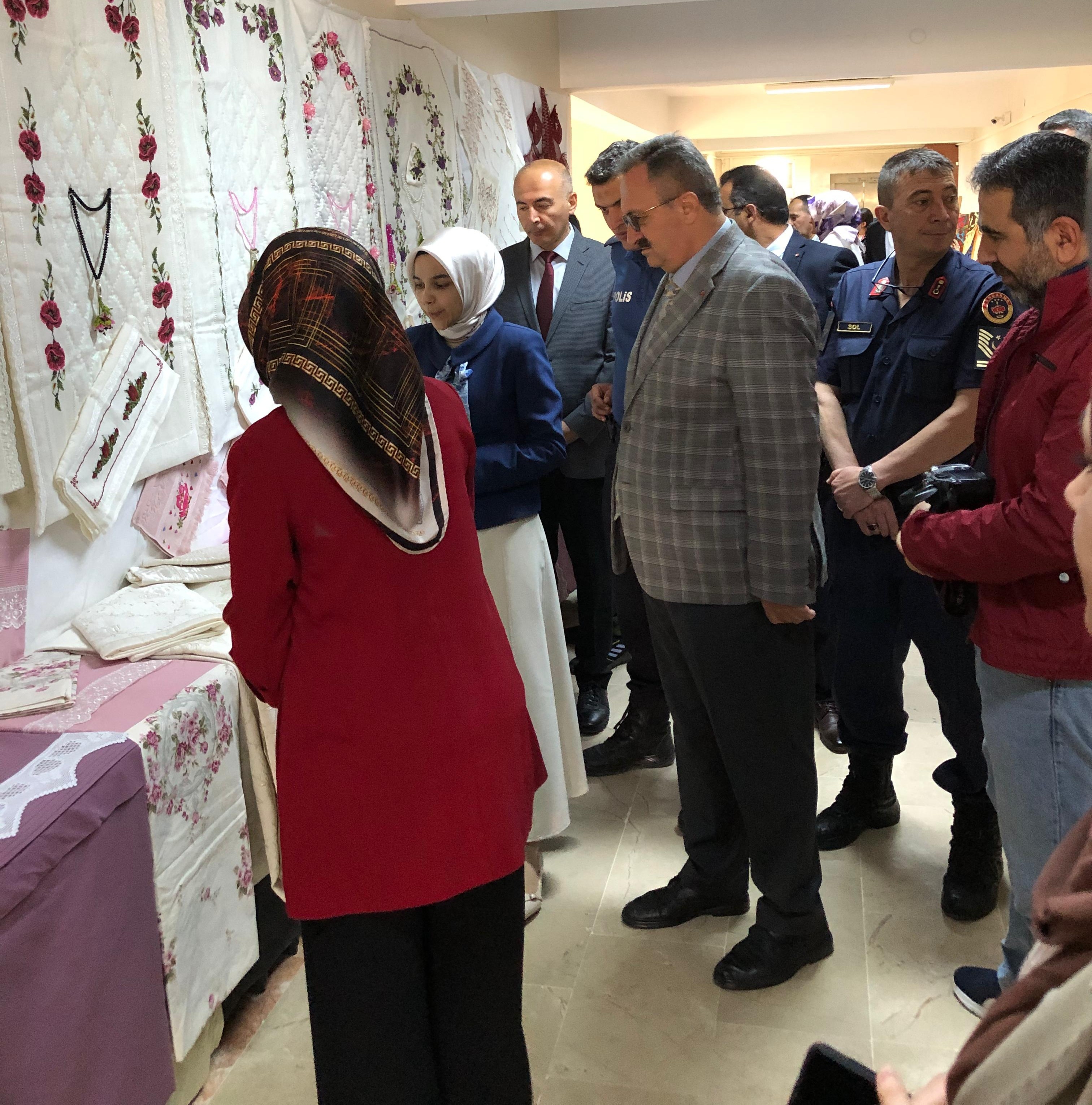 Halk Eğitim Merkezimizin Hayat Boyu Öğrenme Haftası Etkinlikleri kapsamında düzenlediği El Sanatları Sergisi açılışı yapıldı. Hafik Halk Eğitimi Merkezi Salonu'nda düzenlenen sergide, dikiş, nakış, elişi ürünler ile karakalem ve yağlıboya resimleri yer aldı. Kursiyerler tarafından yapılan eserlerinin sunulduğu sergiye Sayın Kaymakamımız Mürüvvet Yücel, Hafik Belediye Başkanvekili Muhammed Ali ÖZBEK, İlçe Milli Eğitim Müdürümüz Vahit YILDIZ ile birlikte ilçe protokolü katılım sağladılar. İlçe Milli Eğitim Müdürümüz sergide emeği geçen tüm idareci ve kursiyerlere teşekkür etti.