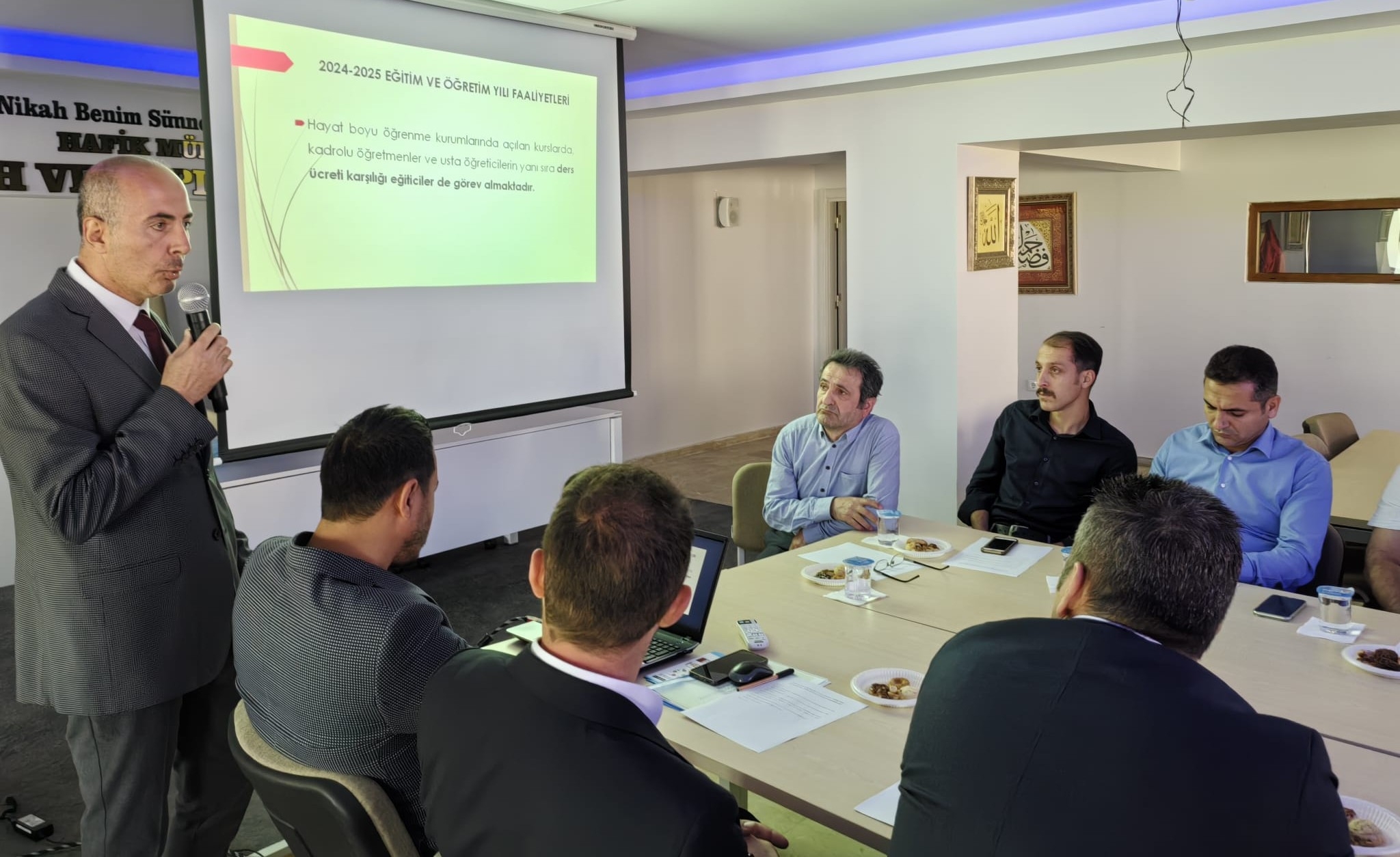 Toplantıda, Kaymakamımız Sayın Mürüvvet YÜCEL ile İlçe Millî Eğitim Müdürümüz Sayın Vahit YILDIZ'ın konuşmalarını müteakiben; Hafik Halk Eğitimi Merkezi Müdürü Sabri ÇETİNKAYA, 2024-2025 eğitim ve öğretim yılında hayat boyu öğrenme alanında yapılan faaliyetleri bir sunum eşliğinde komisyon üyelerine arz etti.